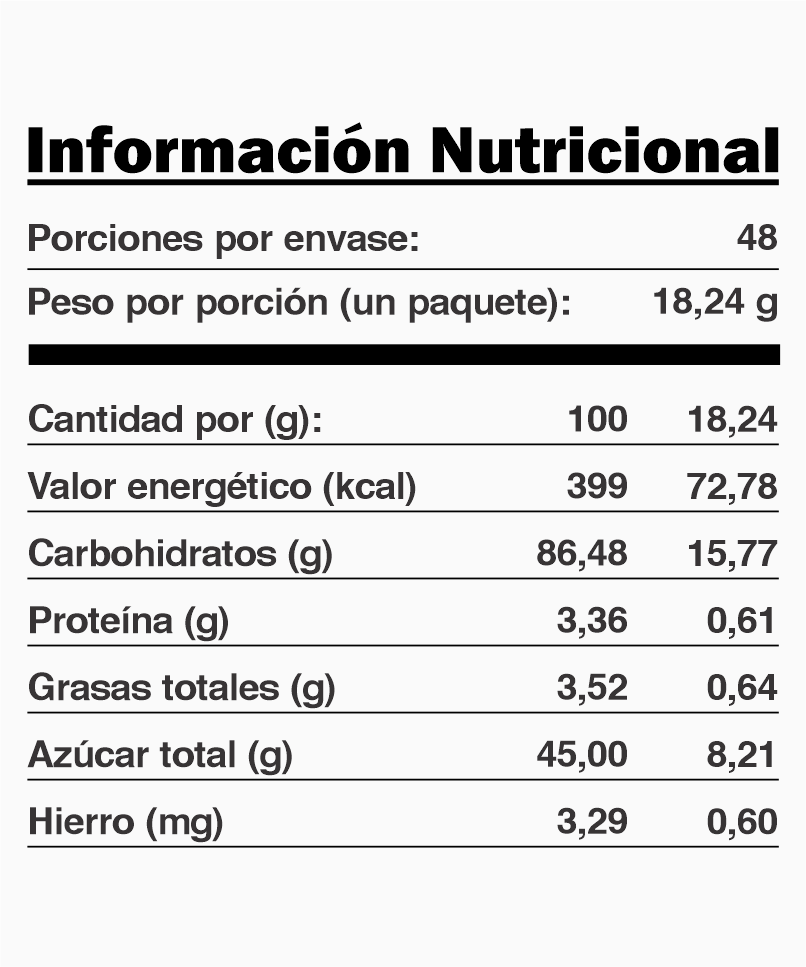 Glucosa, azúcar, grasa vegetal, suero de leche, estabilizante (E-471), regulador de acidez (E-330), sal agente gelificante (E-428), saborizantes artificiales: manzana, fresa, pera, uva , naranja, limón, colorantes artificiales: tartrazina, (E-124), (E-123), y (E-133).